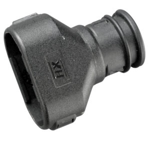 Single compact 90° elbow interfaces providing a dual orientation high integrity connection between the Deutsch DTP04 and Harnessflex conduit systems. These interfaces are designed to snap together over all types of Harnessflex slit and unslit conduit, maintaining maximum conduit bore. The 16-90-DTP04 adaptor will snap into the outlet of a 16mm hinged fitting including types ‘Y’ (YPS), ‘T’ (TPS), elbows (EPS) and joiners (JPS).